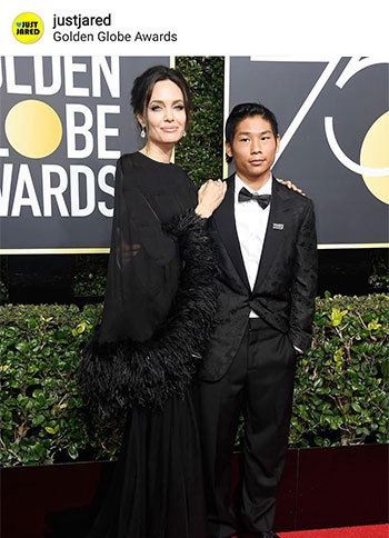 «آنجلینا جولی» همراه با فرزند خوانده بزرگش «پکس» در حاشیه مراسم جایزه سینمایی گلدن گلوب