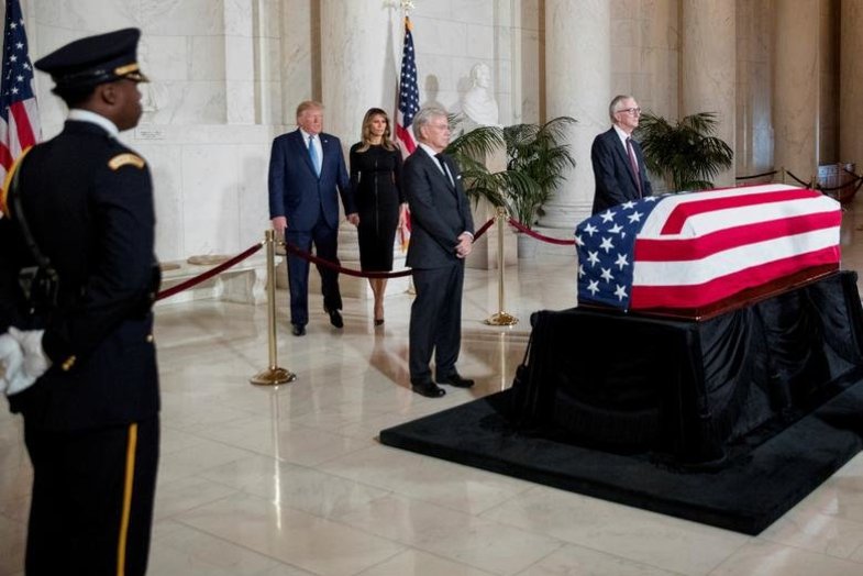 روزنو :دونالد ترامپ رئیس جمهور آمریکا و همسرش ملانیا در مراسم ادای احترام به قاضی دیوان ‌عالی آمریکا که در ۹۹ سالگی درگذشت حضور یافتند.