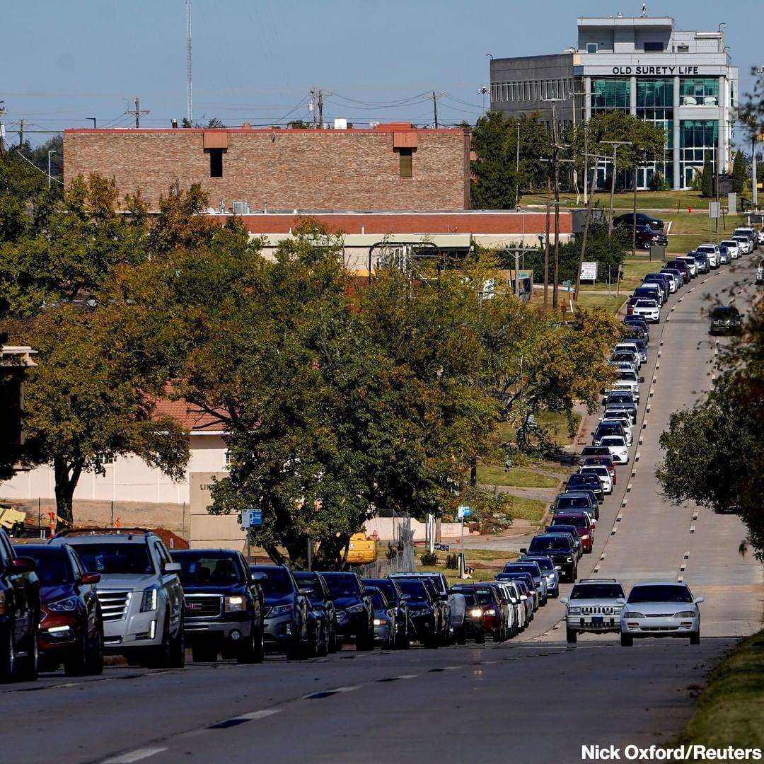 به دلیل شرایط شیوع ویروس کرونا مردم آمریکا ترجیح دادند با خودروهای خود در صف ها حضور داشته باشند.