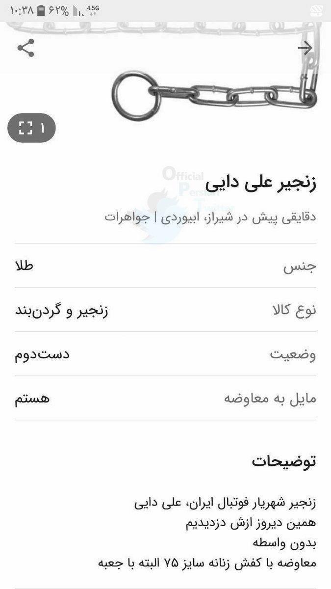 به گزارش روز نو، بعد از انتشار خبر سرقت از علی دایی که منجر به دزدیده شدن گردنبند طلای او شد، حالا یک هموطن خوش ذوق با درج آگهی در یک اپلیکیشن با این موضوع شوخی جالبی داشته است.