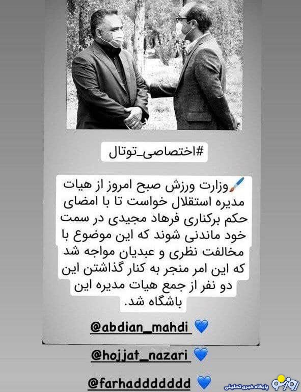 ادعایی که با بیانیه باشگاه استقلال و تکذیب این موضوع همراه بود، اما برادر این عضو سابق هیات مدیره استقلال با انتشار یک استوری دلیل برکناری عبدیان و نظری را مخالفت با اخراج مجیدی عنوان کرده است.
