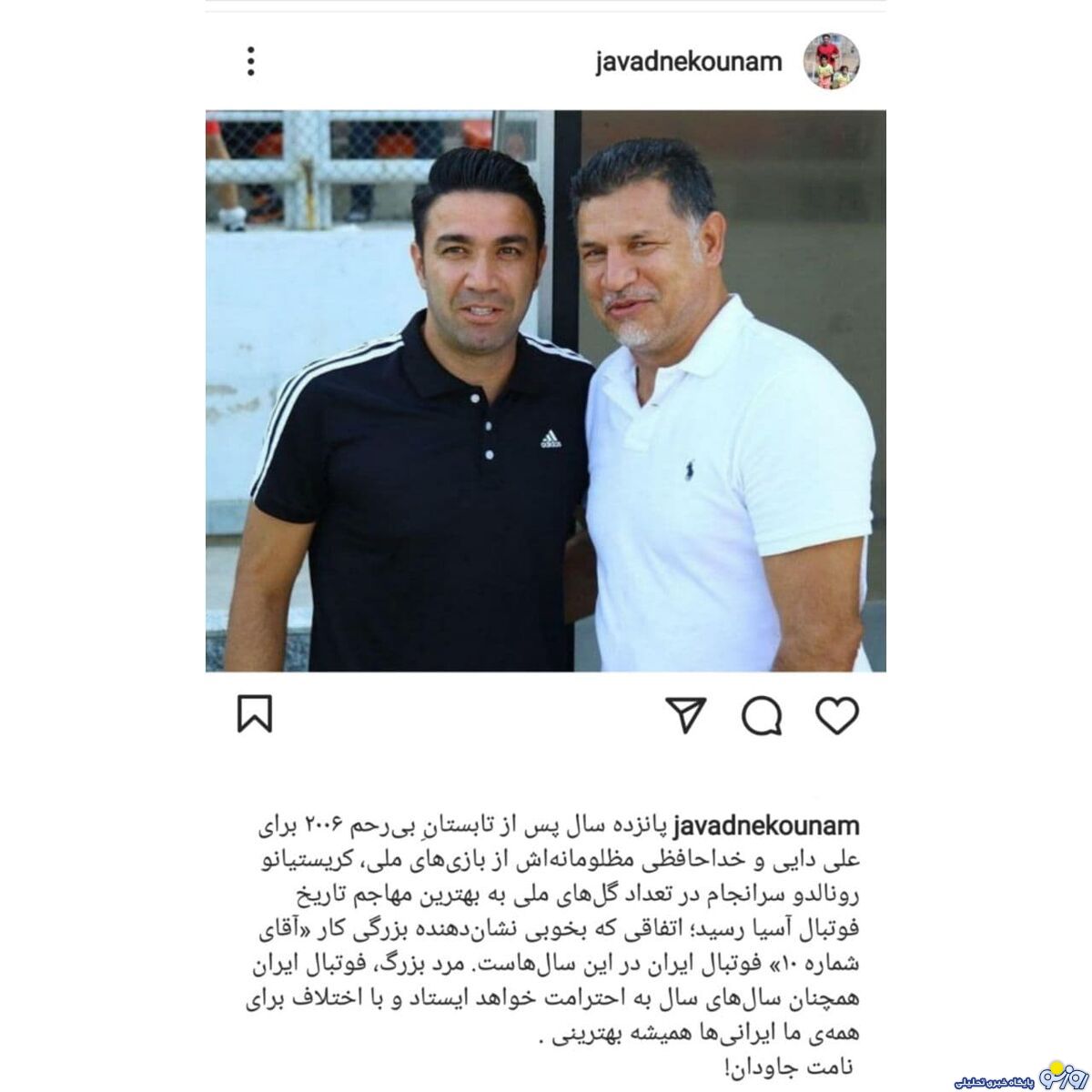 جواد نکونام کاپیتان سابق تیم ملی ایران که رکورددار تعداد بازیهای ملی است، در پیامی به این مسأله واکنش نشان داد و در صفحه اینستاگرامش نوشت: