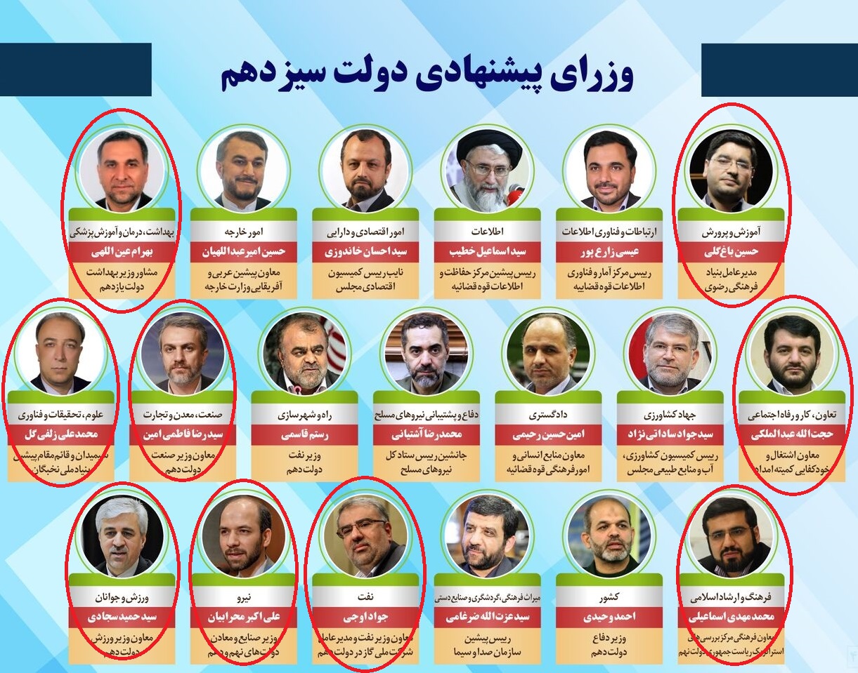 بر پایه این گزارش، وزرای آموزش و پرورش، علوم، ارشاد، صمت، رفاه، نیرو، نفت، بهداشت و ورزش هنوز نتوانسته اند نظر مثبت نمایندگان را جلب کنند و احتمال عدم رای اعتماد به آنها وجود دارد.