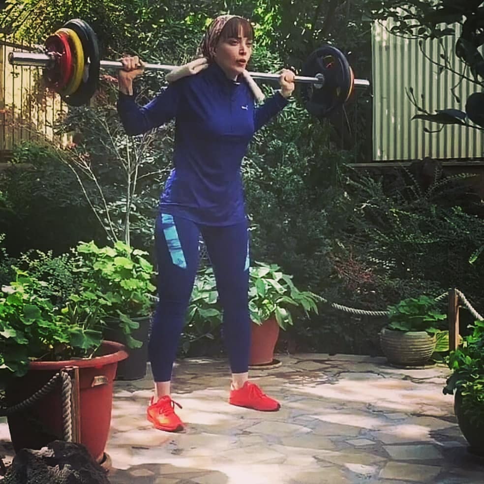 لباس چسبان بهنوش طباطبایی هنگام وزنه برداری + عکس