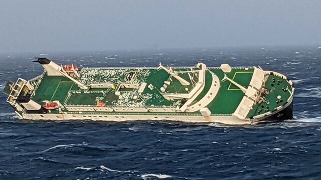 غرق شدن کشتی اماراتی حامل خودرو در آبهای عسلویه/ خدمه کشتی با جلیقه نجات روی آب
