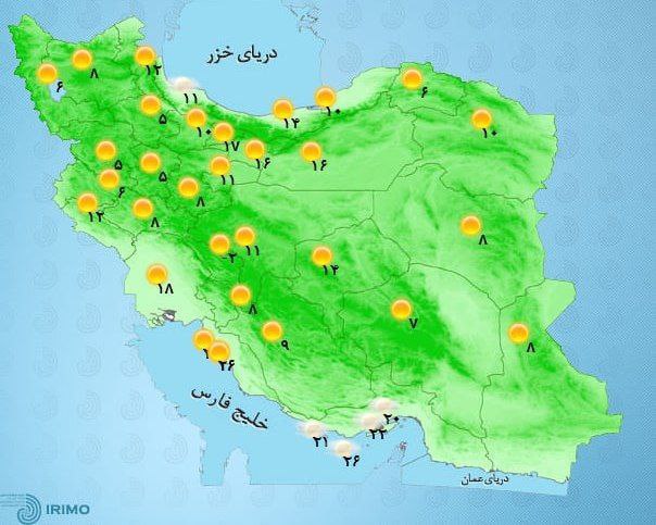روز نو :کارشناس سازمان هواشناسی کشور از وزش باد ملایم در پایتخت خبر داد و گفت: روز پنجشنبه رگبار پراکنده در برخی مناطق شمال غرب، غرب، سواحل دریای خزر و استانهای واقع در دامنه جنوبی البرز مرکزی آغاز خواهد شد.