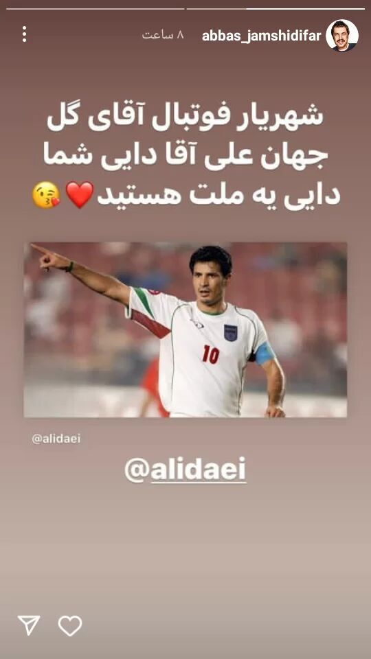 روزنو :عباس جمشیدی فر بازیگر سینما و تلویزیون با انتشار یک استوری در اینستاگرام از علی دایی حمایت کرد.