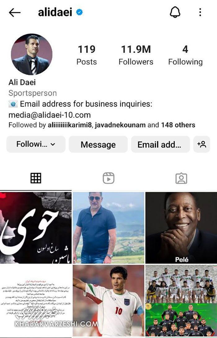 اما با بررسی پیج علی دایی متوجه خواهید شد که دایی کل فالووینگ‌هایش (به غیر از ۴مورد) را پاک کرده است.