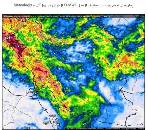 مطابق پیش‌بینی سامانه‌های جهانی هواشناسی کلیه نقاط جغرافیای ایران در ۱۰ روز آینده پذیرای باران هستند.