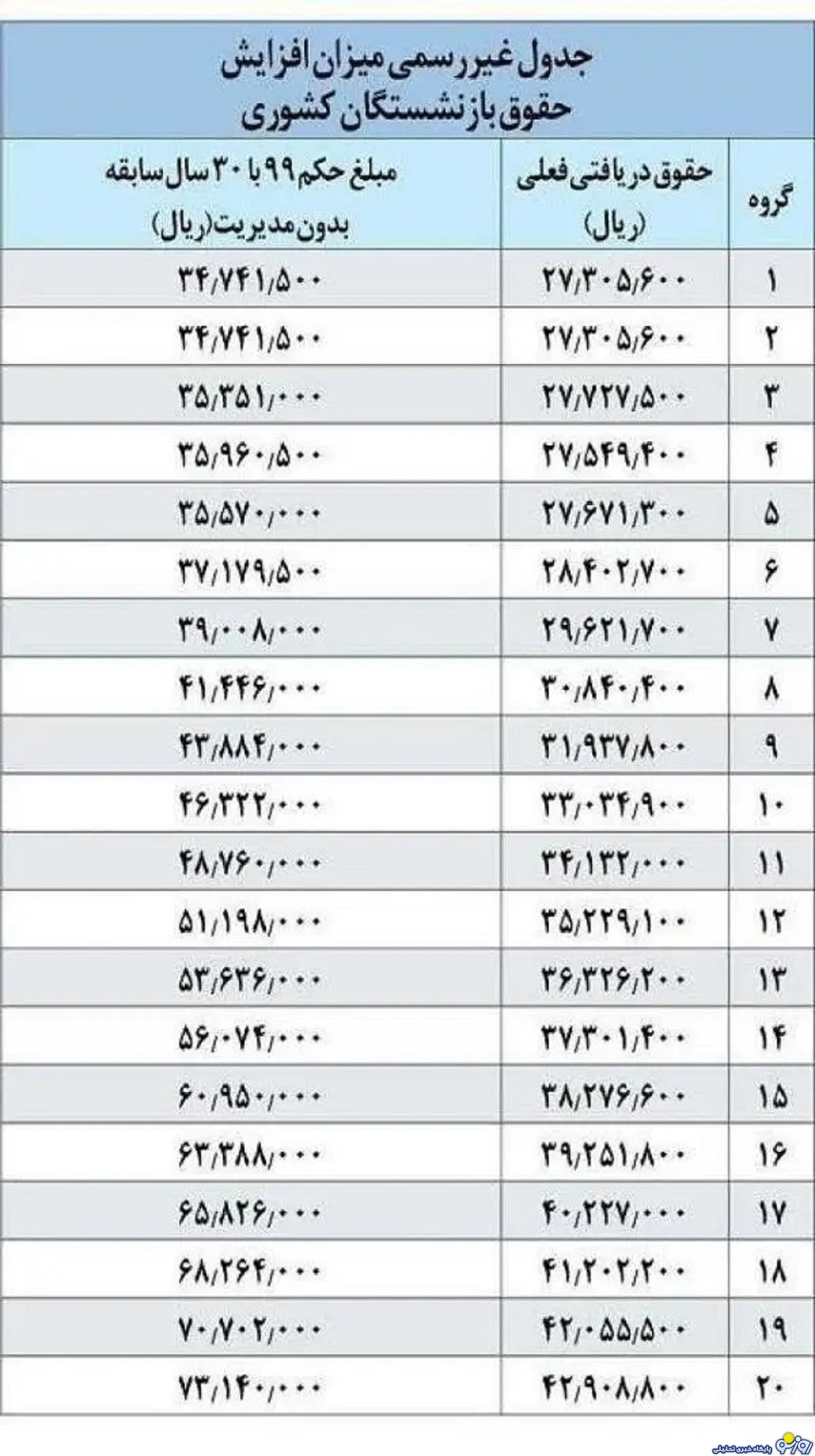 فرمول اعمال اولین مرحله همسانسازی حقوق بازنشستگان+جدول