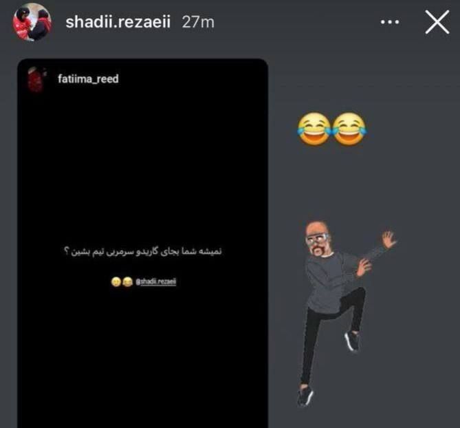 پس از شکست شب گذشته پرسپولیس مقابل نساجی، انتقادات زیادی از سرمربی تیم، گاریدو مطرح شد. برخی از این انتقادات در قالب شوخی مطرح شد. شادی رضایی، سرمربی زنان پرسپولیس یکی از این شوخی ها را در استوری اینستاگرامش منتشر کرده است.