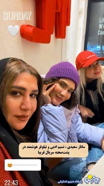 ساناز سعیدی در کنار نسیم ادبی و نیلوفر هوشمند در پشت صحنه «فریبا» (عکس)