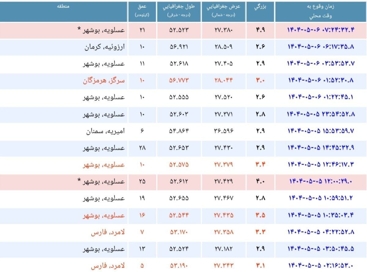 عسلویه با قدرت حدود ۵ ریشتر لرزید!+ جدول