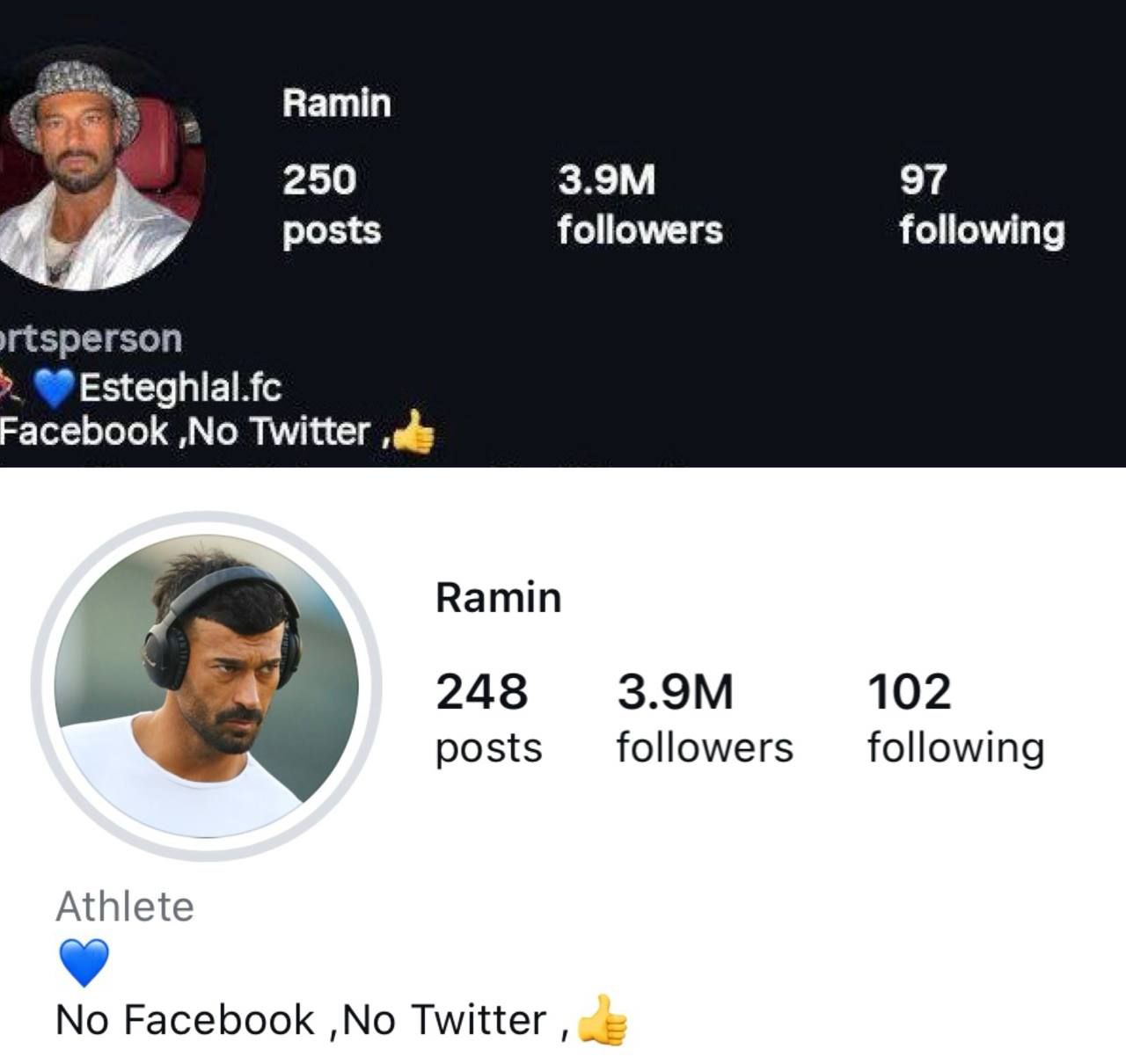 حرکت جنجالی رامین رضاییان/حذف نام استقلال در بیوی اینستاگرام